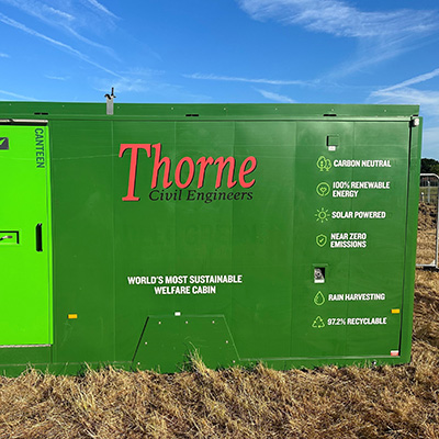 We’re careful to conserve energy and water in all we do. Our eco-welfare unit is an excellent example of this. It incorporates solar panels and a rainwater harvesting system, giving it close to zero CO2 emissions and significantly reducing our use of water on site. We have also installed solar panels at our Union Point office.